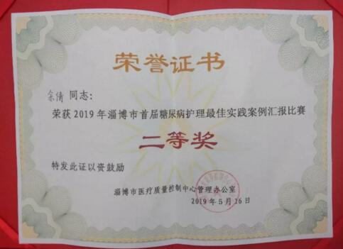 5月16日,淄博市糖尿病護理最佳實踐案例匯報比賽在淄博市中心醫(yī)院舉行,淄博市中西醫(yī)結合醫(yī)院護理團隊以"五架馬車為糖尿病患者保駕護航"為主題,精彩呈現了低血糖發(fā)生時的救治、預防、護理方法等,受到了評委的充分肯定,榮獲二等獎。
